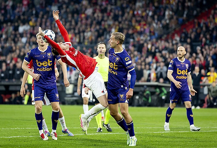В основное время сыграли вничью 1:1, оба гола – с пенальти. На 54‑й минуте отличился форвард АЗ Трой Пэрротт, а уже на 90+9 ответил капитан «Гоу Эхед Иглс» Матс Дейл. АЗ пропустил из-за нелепой руки Пера Копмейнерса: полузащитник задел мяч в падении. Соперники его, конечно, придерживали – но Копмейнерс рухнул слишком красиво, еще и мяч прилетел точно в руку. В итоге – ничья на последней добавленной.
