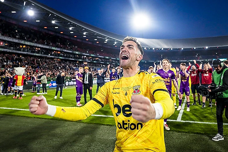 В дополнительное время обошлись без голов, а в серии пенальти точнее оказались футболисты «Гоу Эхед Иглс» – 4:2. Долгожданный трофей принес 25-летний вратарь Яри де Бюссер: у него восемь сэйвов в игровое время и еще два – в серии пенальти. Он уже протащил команду в 1/8 финала, когда выиграл серию против «Спарты».