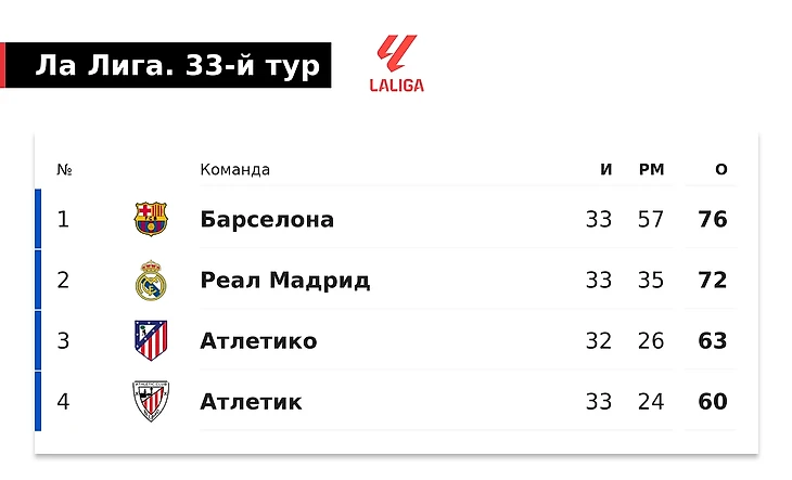 «Реал» по-прежнему отстает от «Барсы» на четыре очка. «Атлетико» вряд ли уже вклинится, даже с матчем в запасе.