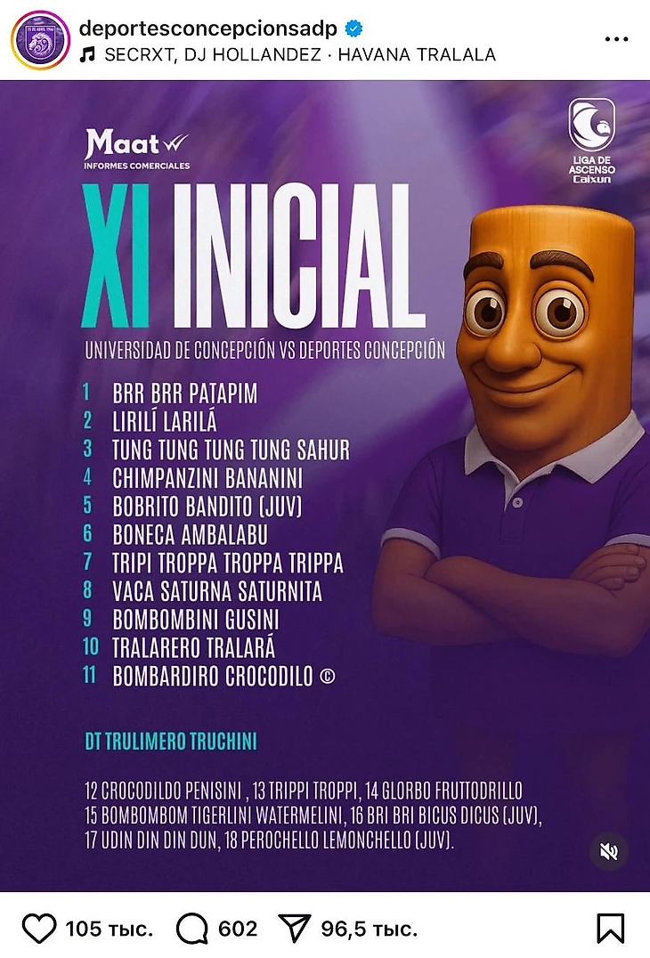 Вот, скромный клуб из Чили – «Депортес Консепсьон» – объявил так состав на игру и собрал невиданные для себя 100к лайков на пост.