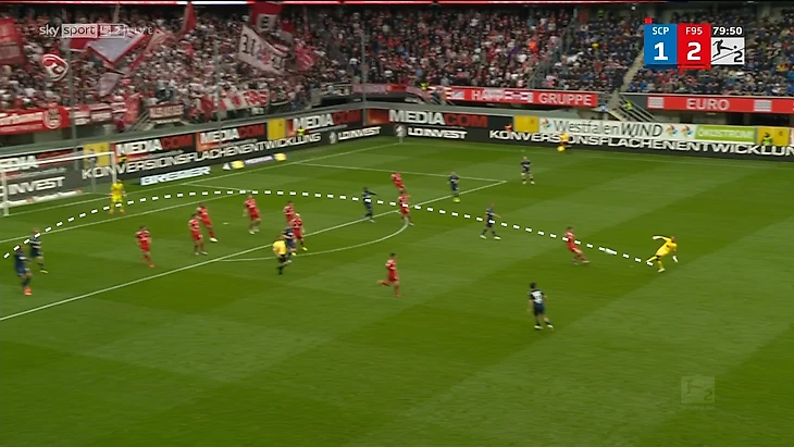 Карта передач вратаря Падерборна из второй бундеслиги после 70й минуты на оценку. Мнение?
