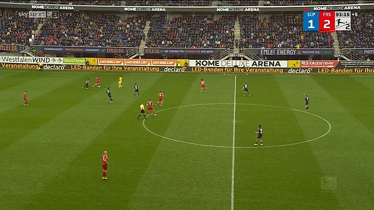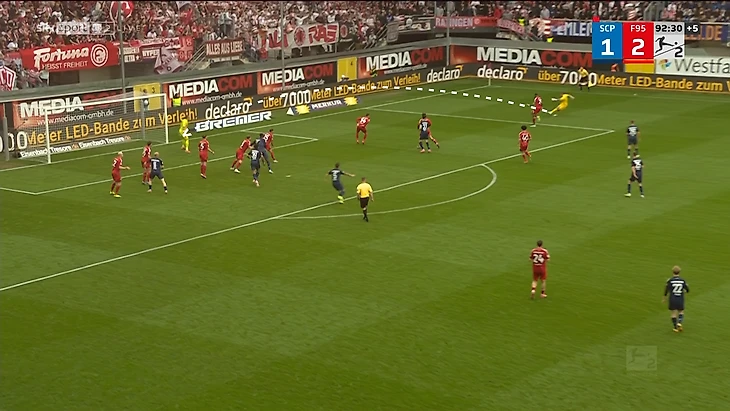 Выходя из ворот Риманн создавал равенство среди полевых игроков, ведь у Падерборна был удален игрок. Так, хозяевам удавалось лучше контролировать мяч и доставлять мяч в штрафную. Мало того, что Мануэль шел вперед, он исполнял все технические приемы на уровне центральных защитников.