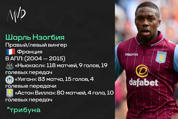 Потом был переход в «Астон Виллу» за 10.00 миллионов Евро, но за бирмингемцев Нзогбия провел лишь один более-менее хороший сезон. Затем начались проблемы с коленом, после которых француз уже не вернулся на былой уровень. После провального для «Виллы» сезона 2015/16 Шарль должен был перейти в «Нант», но трансфера не случилось — виной всему проблемы с сердцем у игрока, по итогу завершившие его профессиональную карьеру в тридцать лет.