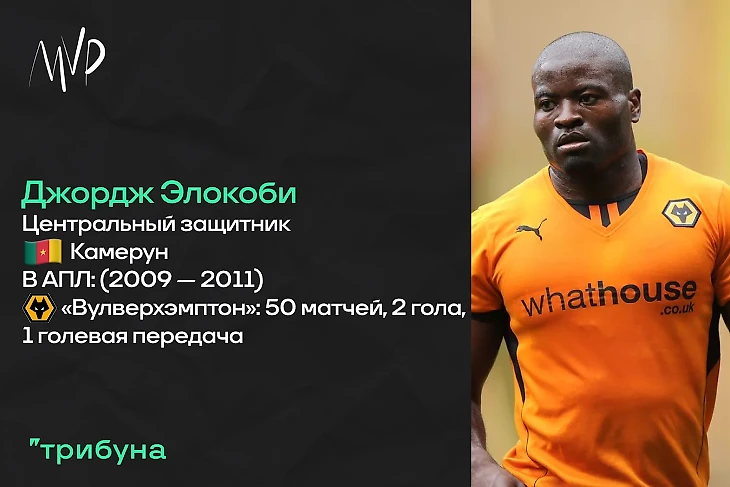 Ну и напоследок, пожалуй, самый комичный (и единственный подобный) персонаж этой подборки. Защитник Джордж Элокоби провел в АПЛ всего пятьдесят поединков, играя за скромный «Вулверхэмптон», сражавшийся за выживание. Казалось бы, что такого в обычном африканском защитнике из клуба-аутсайдера? Для ответа на этот вопрос советую всем погуглить его фотографии. Или же порыться в своей памяти для визуализации футболиста «волков».