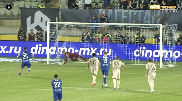 Уже на 86-й махачкалинцы приблизились: Кирилл Зинович забил прямым ударом со штрафного точно – в стиле Деклана Райса. Вдесятером «Краснодар» занервничал – и едва не сыграл вничью. Выручил только Агкацев. У вратаря «Краснодара» уже третий отбитый пенальти в сезоне – в такой важный момент.