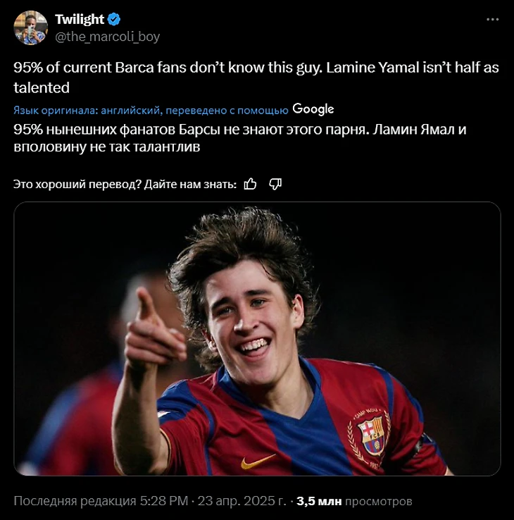 «95% нынешних фанатов «Барсы» не знают этого парня. У Ямаля нет и половины его таланта», - написал фанат.