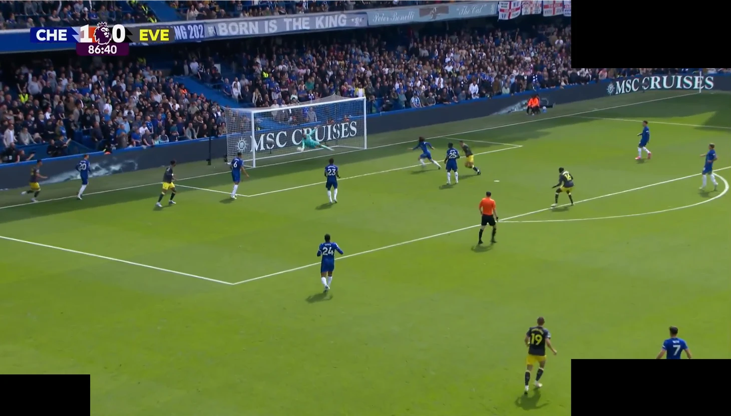Первый и единственный гол в этом матче случится благодаря прессингу «Челси». Из-за оказываемого давления, Пикфорд вынес мяч вперёд на Бето. Форвард смог принять мяч, но Трево Чалоба отлично сыграл в отборе.
