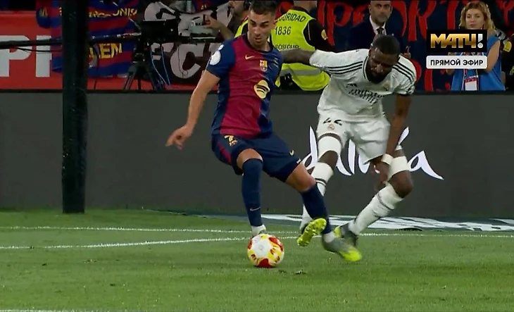 Мог решить и эпизод за пару минут до: когда Антонио Рюдигер вот так коснулся ноги Феррана Торреса, форвард «Барсы» упал, и это не было так уж похоже на симуляцию. Больше походило на подсечку защитника «Реала».