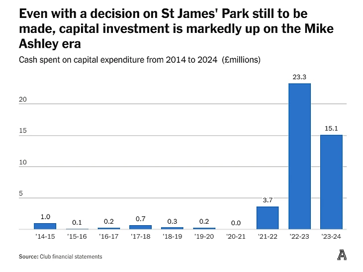 Но не только составом единым. На инфраструктуру при Эшли расходовались гроши: за шесть последних лет его правления капиталовложения даже не поднимались выше £1 млн в год. После смены владельцев ситуация резко изменилась: вложено более £40 млн в основные активы.