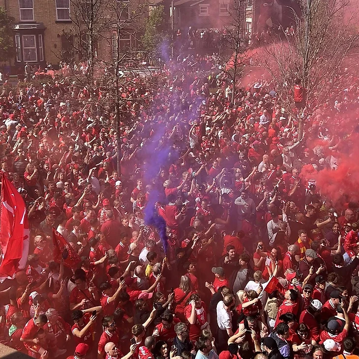 План сработал! Синий дым был виден в толпе фанатов «Ливерпуля» у стадиона.