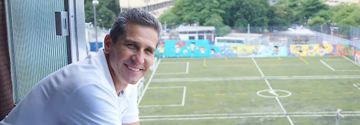 «Там, наверху, — говорит Жоржиньо, — я жил, прямо там, на шестом этаже, рядом с водопроводом», — и указывает на крайне обшарпанный фасад здания, которое с двух сторон окружает четыре футбольных поля для мини-футбола. Сейчас 60-летний мужчина выглядит подтянутым и предприимчивым в своих джинсах и серебристых кроссовках; его хороший немецкий сохранился. «Я мечтал о чем-то подобном с детства. Когда стану профессионалом, построю что-то вроде Диснейленда».