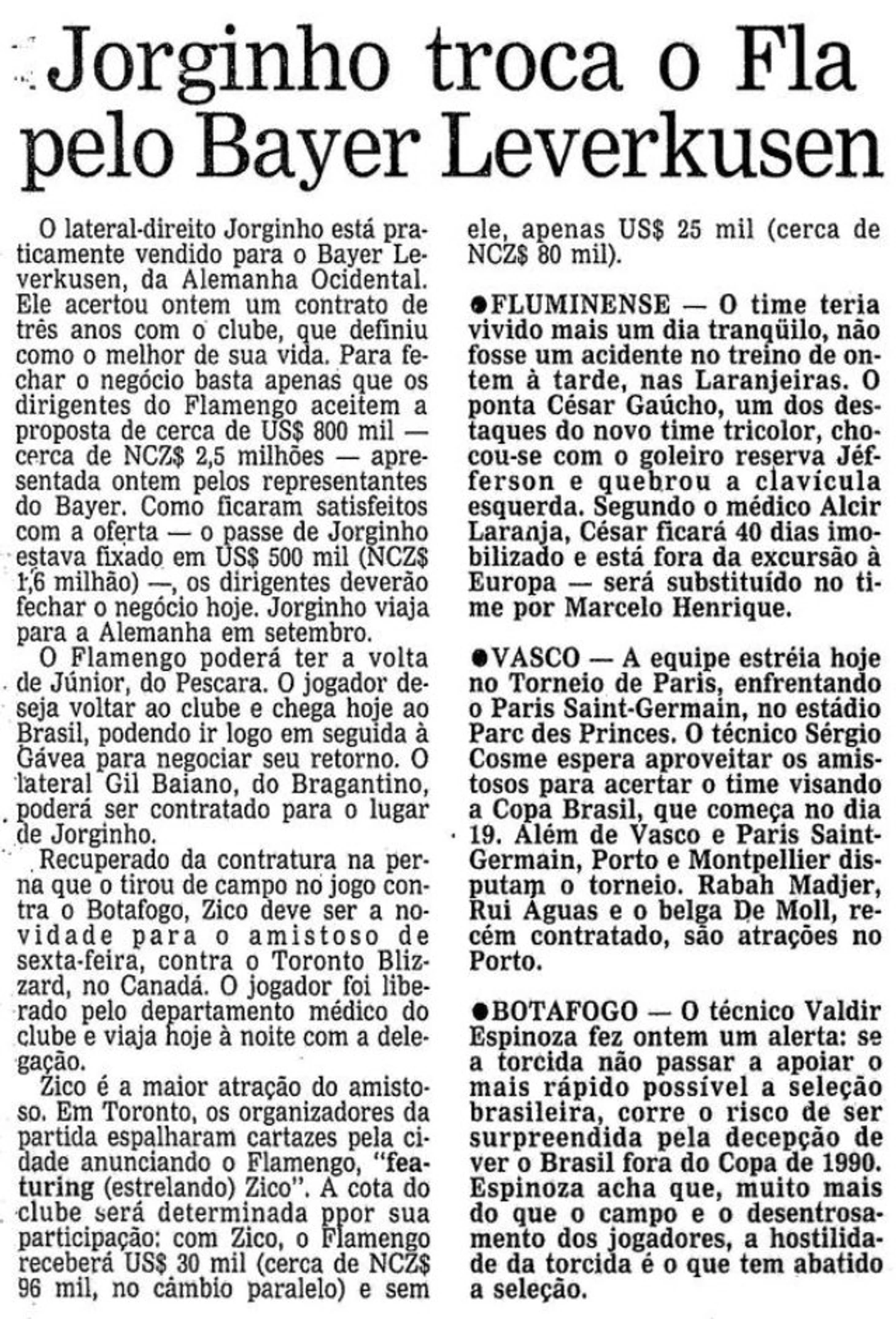 В 1989 году «Фламенго» просто летал по полям в Кариоке. Тренером команды был Теле Сантана, а на поле, помимо Жоржиньо, были такие имена, как Зе Карлос, Алдаир, Леонардо, Ренато Кариока, Алсиндо и Бебето. Молодой урожай талантов, возглавляемый Зико, который уже был на закате дней и не знал, когда колено позволит ему играть, а когда нет. Эта команда громила своих соперников в первом раунде. Но уступили «Ботафого» на последних минутах матча, в котором выигрывали со счетом 3:1. Если бы они выиграли ответный матч, то автоматически стали бы чемпионами Рио-де-Жанейро. Но не случилось – «Ботафого» стал чемпионом благодаря голу Маурисио.