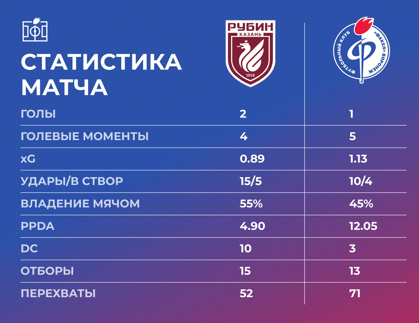 Отдельного внимания заслуживает роль Сергея Божина: его высокая позиция в центральной зоне обеспечивала опеку центральных полузащитников «Рубина» 1-в-1 в середине поля и позволяла Никите Моцпану активно включаться в давление в финальной трети. Именно это взаимодействие стало одним из ключевых факторов качественной работы всей прессинг-системы «Факела».