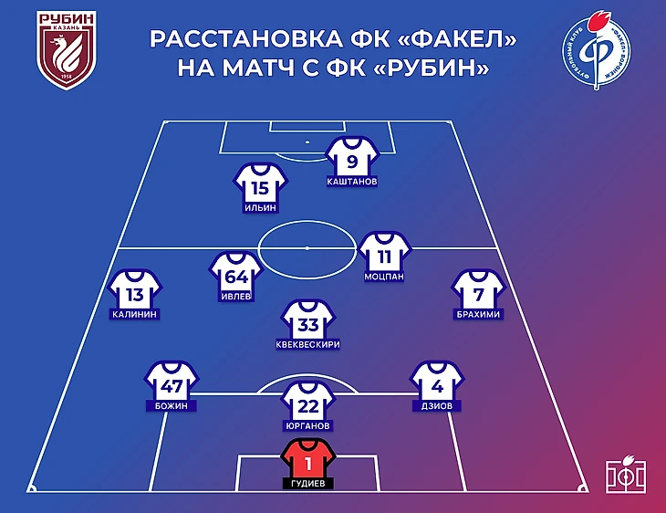 Стартовая расстановка игроков «Факела» на матч с ФК «Рубин»