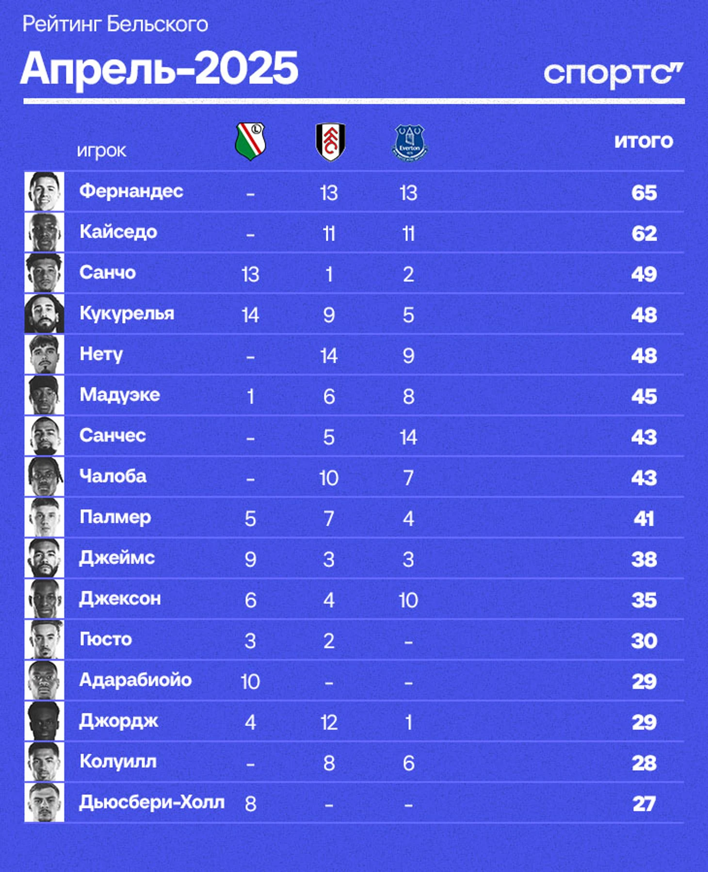 Роберт Санчес выдал отличный апрель. Пять матчей, три сухих, два раза стал игроком матча. Если бы Роб стоял и в Лиге конференций, смог бы набрать куда больше баллов. Но там пожарил Йоргенсен во второй встрече.