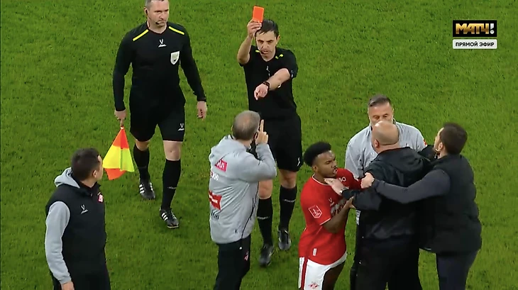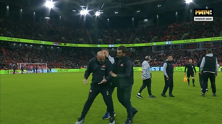 После свистка на перерыв вскипел Деян Станкович. Сразу пошел к главному судье Павлу Кукуяну: серба пытались сдержать и игроки, и коллеги-тренеры. В итоге Кукуян удалил аналитика «Спартака» Винченцо Сассо.