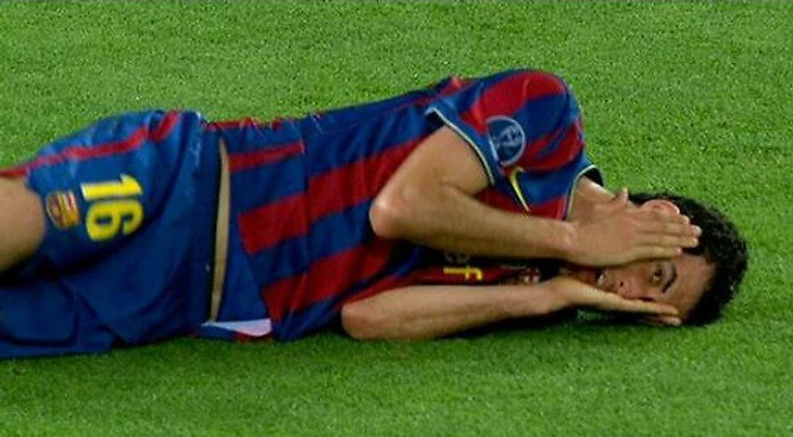 В ответном матче Бускетс точно внес свой вклад: на 28-й минуте за фол на нем красную карточку получил Тиаго Мотта. А Серджи, выглядывающий из-под рук на судью, породил мем.