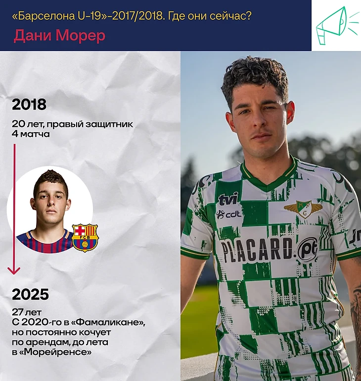 Дальнейшая карьера: после победы пробыл в «Барсе» еще два года, прежде чем уйти в 2020-м в «Фамаликан» за 400 тысяч €. Через сезон в португальском клубе началась бесконечная череда аренд: дважды «Андорра», канадский «Атлетико Оттава» и «Морейренсе», где Морер числится с февраля.