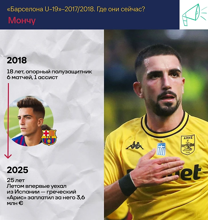 Дальнейшая карьера: заскакивал в систему «Барсы» очень ненадолго. Появился в 2017-м, а в 2019-м уже покинул клуб (еще и уходил в годичную аренду в этот период). Затем в карьере испанского опорника были «Кастельон», вторая команда мадридского «Атлетико, «Депортиво» и снова «Кастельон».