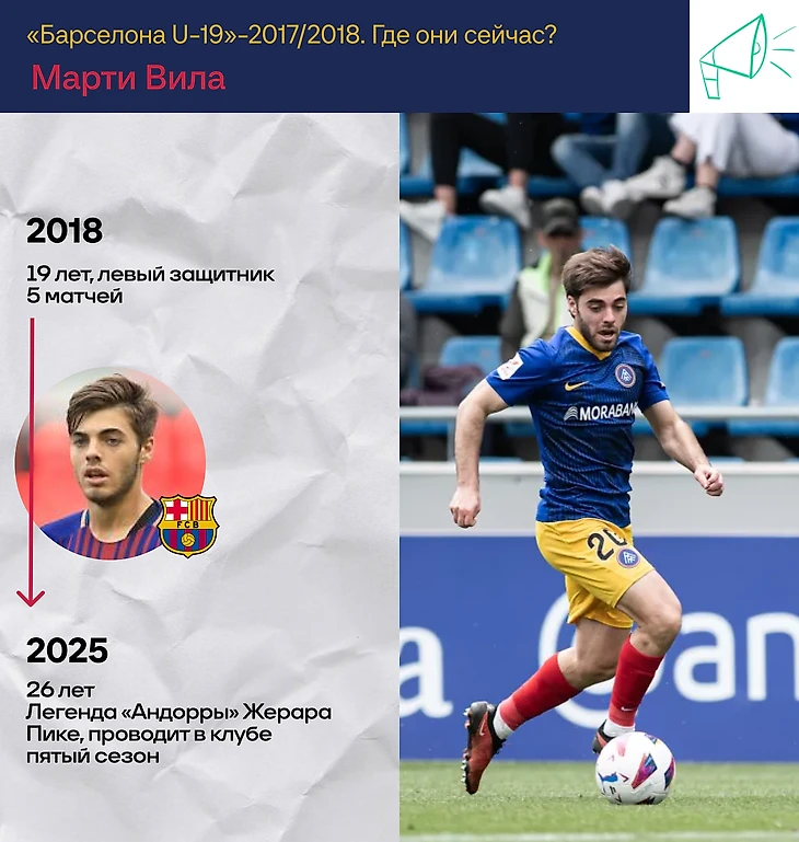 В клубе Жерара Пике Вила уже стал настоящей легендой: провел более 100 игр, вошел в топ-5 по количеству проведенных матчей. В этом сезоне есть шанс вернуться с «Андоррой» в Сегунду. На прямое попадание шансов практически нет, но удержаться в зоне плей-офф можно – пока на 5 месте, опережая «Бильбао Атлетик» на 2 очка за 4 тура до финиша.