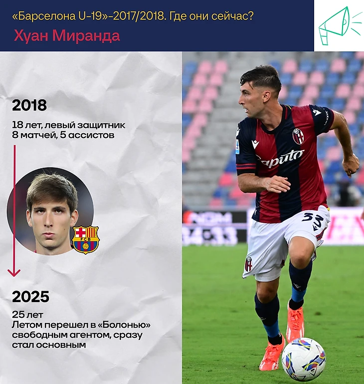 Миранда вернулся в «Бетис», откуда и приходил в молодежку «Барселоны». Через год аренды испанец перешел туда на постоянной основе. Итог – больше 100 матчей за 4 года, Кубок Испании-21/22 и переход в «Болонью» свободным агентом.