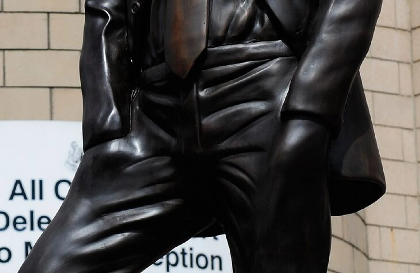 Засунули в карманы, а потом решили немножечко сделать все условно. Вся фигура от этого изменилась. Еще и нога, которая стоит на мяче, сломана. Ужас.