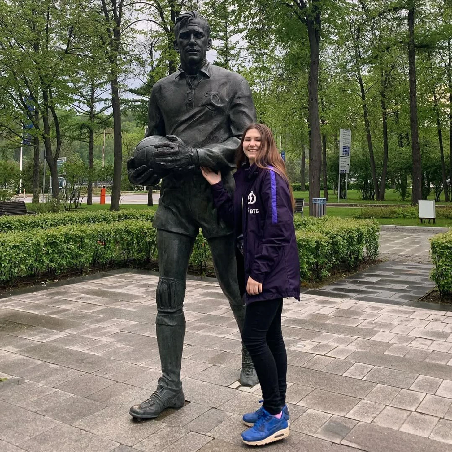 Только вот возле Динамо у меня каждый раз возникает вопрос к руководству клуба (или кто там за это отвечает): почему у вас Яшин в углу за кустами? Мимо него даже люди не ходят, это знать надо, что он там стоит, чтобы увидеть. Это так зачем сделано? В чем проблема перенести на место перед стадиком или перед полукругом касс, или куда угодно еще? Он - символ клуба. И вот так...