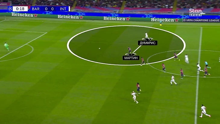 Выход Думфриса подчеркивает, что Индзаги мыслил не с позиции более осторожной игры в выездной встрече против топ-соперника, а с позиции максимально мощного удара в главную болевую точку «Барсы». Сделать удар по-настоящему болезненным можно было только выпустив в зону Мартина атакующего исполнителя.
