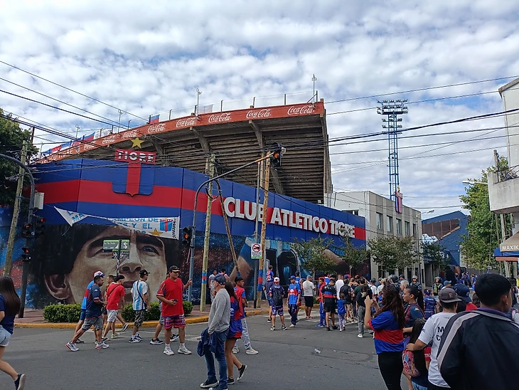 И поэтому для меня было странно, что «Тигре» играет не в своем городе, а в соседней Виктории. Начал разбираться и узнал, что изначально они все-таки играли в Тигре. И в 1913 году президент клуба взял на свое имя (как физ. лицо) в аренду на 6 лет земли под стадион. Официально команда начала играть на нем с апреля 1914 года. Но столичные команды не испытывали большого энтузиазма ездить в Тигре на матчи: далеко и небезопасно. И уже через полгода в игре с «Индепендьенте» после первого тайма толпа зрителей выбежала на поле и избила арбитра. То ли это была провокация, то ли у «Тигре» были такие страстные болельщики, однако этот эпизод был использован для отстранения от соревнований «Тигре» на своем стадионе. Через 20 лет руководство решает выкупить земли в соседнем городе Виктория, который ближе к Буэнос-Айресу и безопаснее Тигре. Там и был построен стадион, на котором команда играет и сегодня.