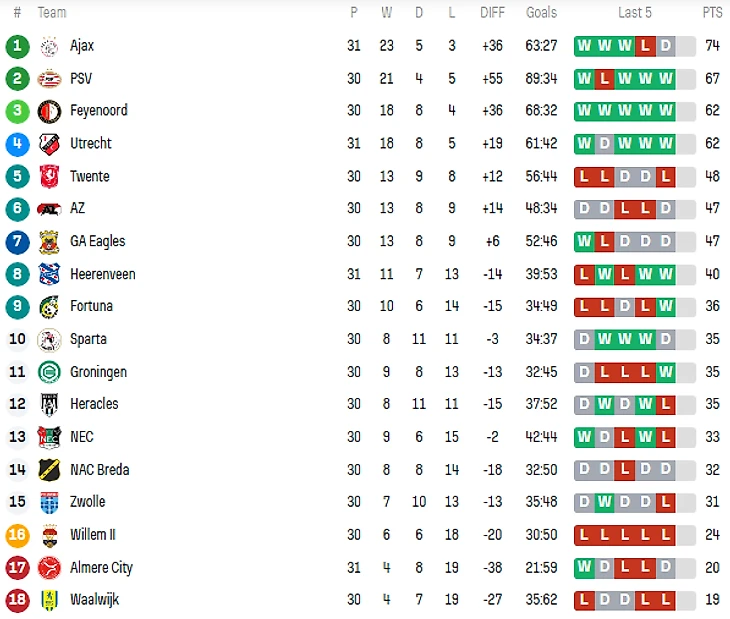 Тур без Аякса и Утрехта, которые сыграли свои матчи заранее.