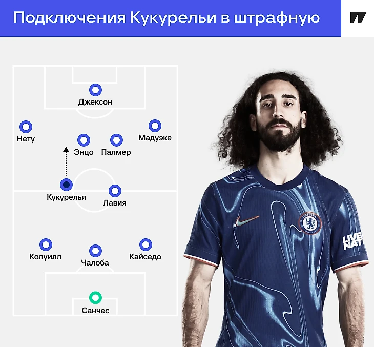 Мареска отзеркалил собственную идею: теперь выше поднимается Кукурелья, он более атакующий инвертированный фулбек. И он намного эффективнее Гюсто: 6+3 во всех турнирах против 0+2 у француза. Возможно, голевое чутье Марка тренер заметил в прошлом сезоне: первый мяч за «Челси» Кукурелья забил в четвертьфинале Кубка Англии как раз «Лестеру» Марески.