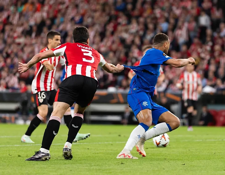 Вернёмся на стадию назад и вспомним ответный матч Атлетика против Рейнджерс. Помните разорванную футболку Дессерса? Найдите этот эпизод, он на самом деле очень показательный. Есть впечатление, что голкипер Атлетика Агирресабала был на мяче первый. Но давайте предположим, что не первый, и Дессерс забил. Катастрофа? Нет. Шла 17-ая минута игры. Ещё можно было сто раз отыграться и выиграть. Но Вивиан всё равно придержал нападающего. За футболочку. И это очевидно был рефлекс, а не осознанное решение. В итоге судьи на VAR тоже, видимо, посчитали, что нападающий не успевал к мячу, и эпизод заиграли.