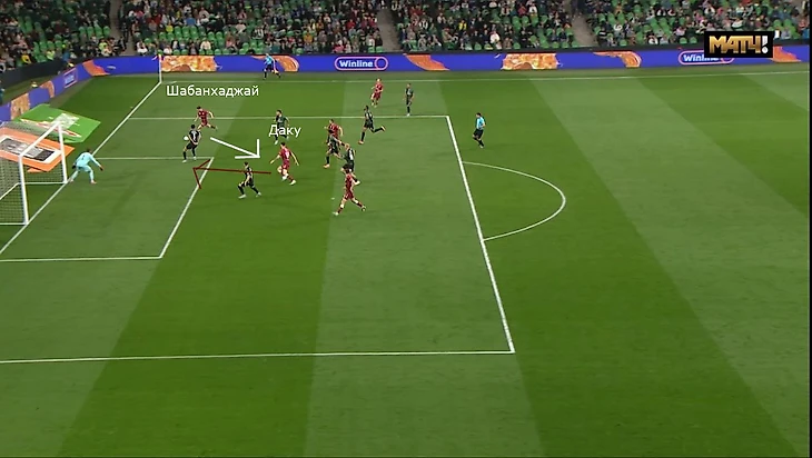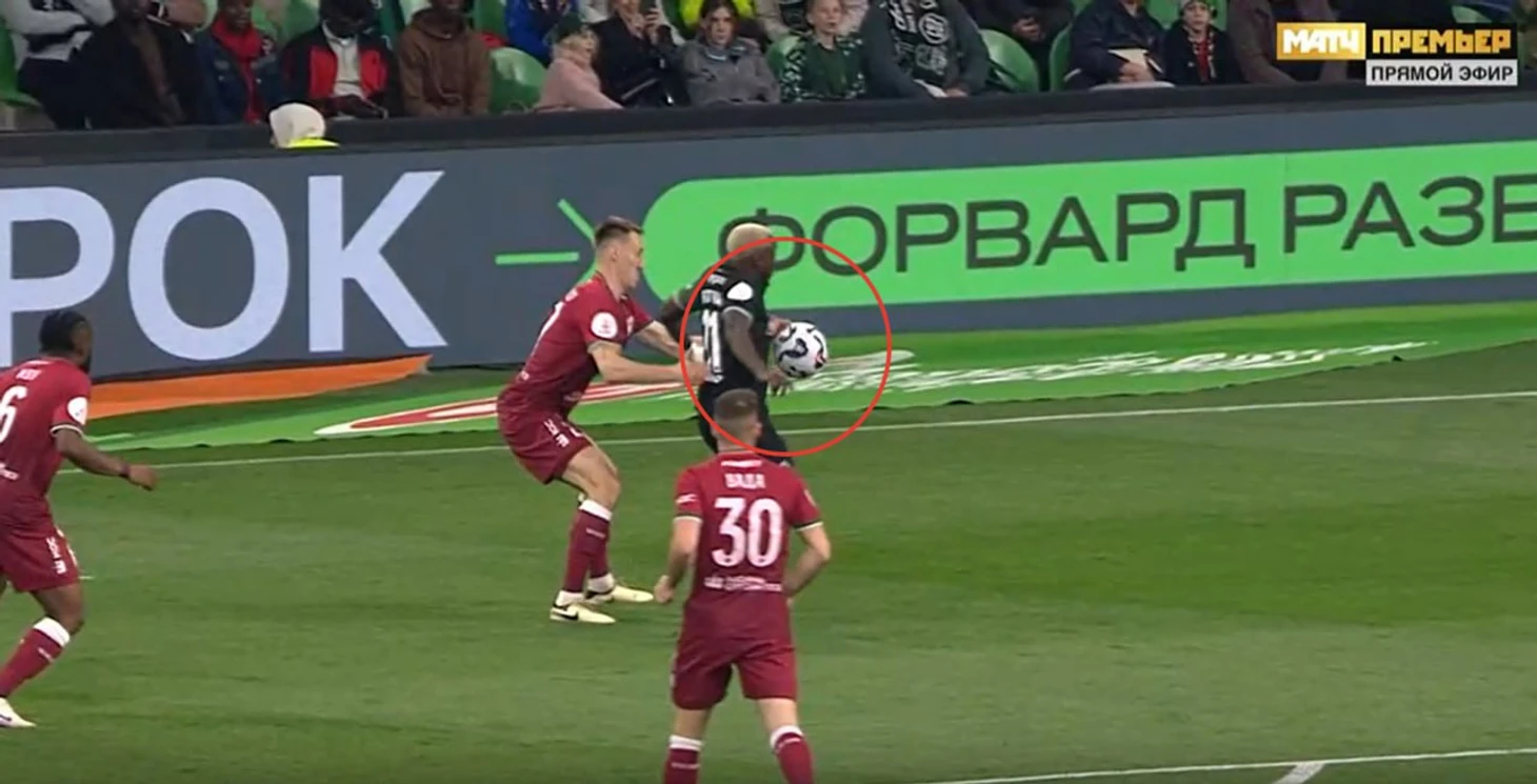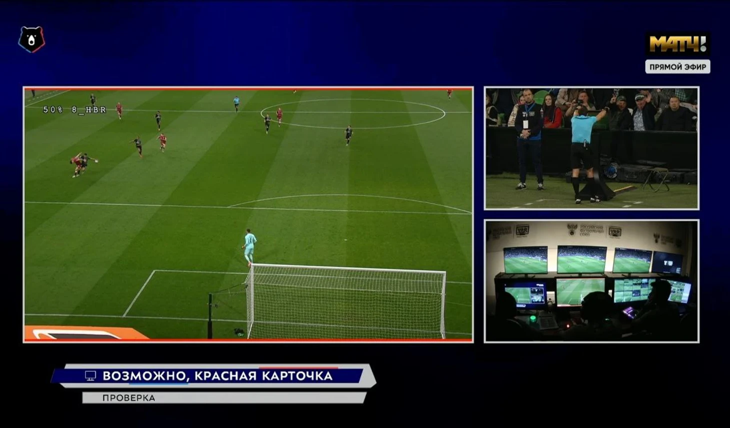 После гола «Краснодар» продолжил давить, но «Рубин» находил выходы через длинные передачи. В одном из таких моментов хозяева могли остаться в меньшинстве: Витор Тормена нарушил правила на Даку. Арбитр Левников сначала показал жёлтую карточку, но после просмотра VAR оставил своё решение в силе.