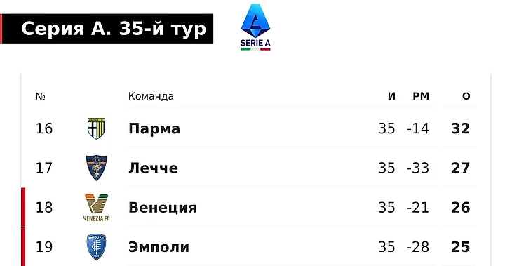 «Лечче» сейчас на 17-м месте, прямо перед зоной вылета. И выше команда Федерико вряд ли поднимется.