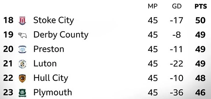 Компанию лутонцам составили «Кардифф» Рэмзи и «Плимут» уже-не-Руни. Вот так выглядит итоговая нижняя половина таблицы.