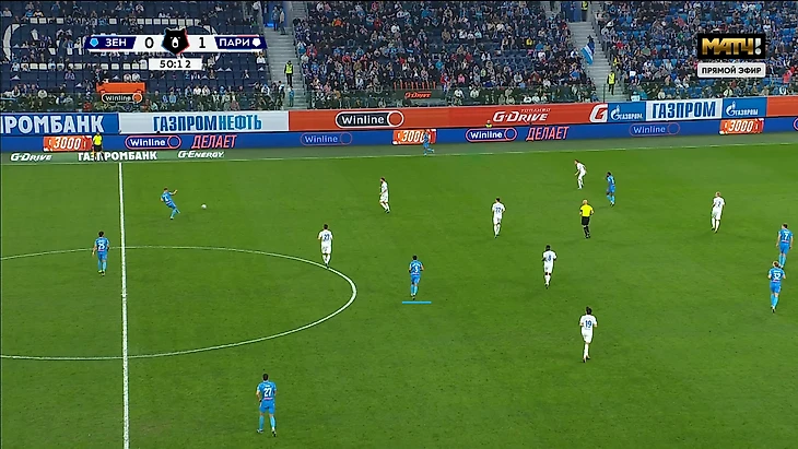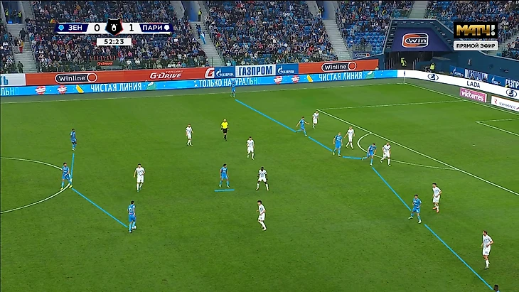 Счёт продолжал оставаться ничейным. Можно ли сделать состав ещё более атакующим? Выход Кассьерры вместо Мантуана на 67 минуте и перевод на правый край обороны Луиса Энрике будто бы говорил «всё или ничего», ведь при любой позиционной атаке Пари НН питерцы бы оборонялись в схеме 4-4-2 с правым защитником Энрике и супер открытой опорной зоной Педро-Дуглас. Благо для сине-бело-голубых соперник практически не вылезал со своей половины, не говоря уже об атаках.
