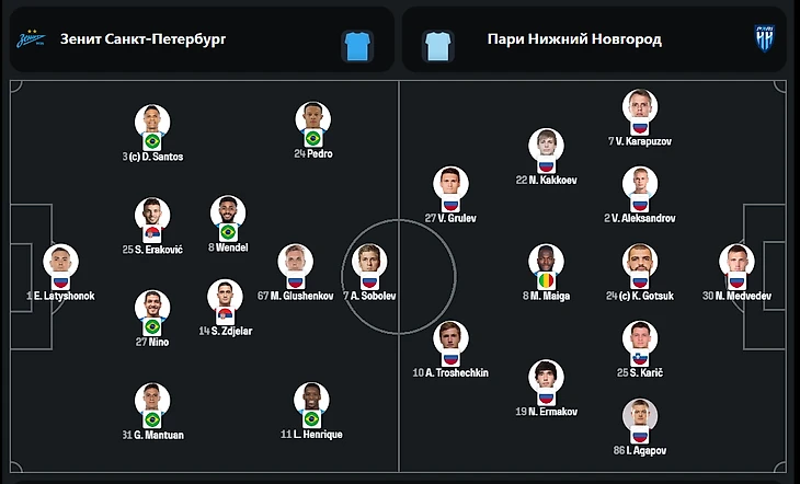 Первые замены от Семака последовали уже в перерыве, как часто бывает по этому сезону. Плохой тайм Зделара и эмоциональность Глушенкова стали причиной выхода Горшкова и Лусиано.