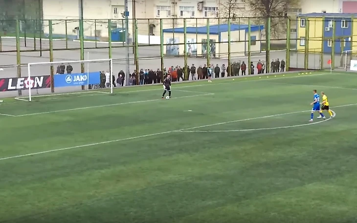 При этом многие болельщики остались смотреть футбол сквозь сетку-рабицу, препятствующей вылету мяча за пределы стадиона. Как-никак, а первый домашний матч во Второй лиге – событие важное. Получилась этакая стоячая трибуна. Забавно, что из-за того, что футбольное поле несколько возвышалось над местом вынужденного скопления болельщиков, видны они были по пояс. Я даже вспомнил стадион «Хайбери», где первый ряд находился ниже уровня поля.
