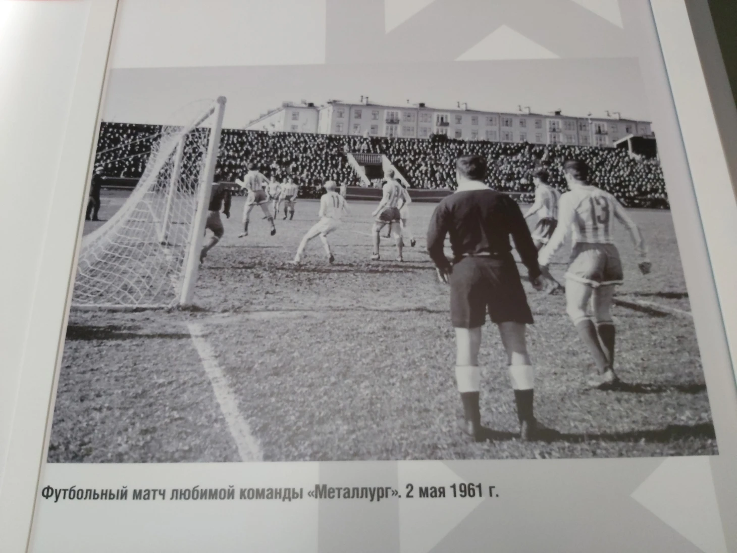 Мое же внимание привлек уголок спортивной истории, в особенности фотография с футбольного матча череповецкой команды «Металлург» в 1961 году и заполненные до отказа трибуны. В том году «Металлург» выступал во Второй лиге (Класс «Б») и по итогам сезона занял второе место.