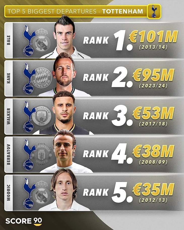 За Гарета Бэйла «шпоры» выручили рекордные для себя 101 млн евро. Выделяется трансфер Луки Модрича, ставшего абсолютной легендой «Мадрида».