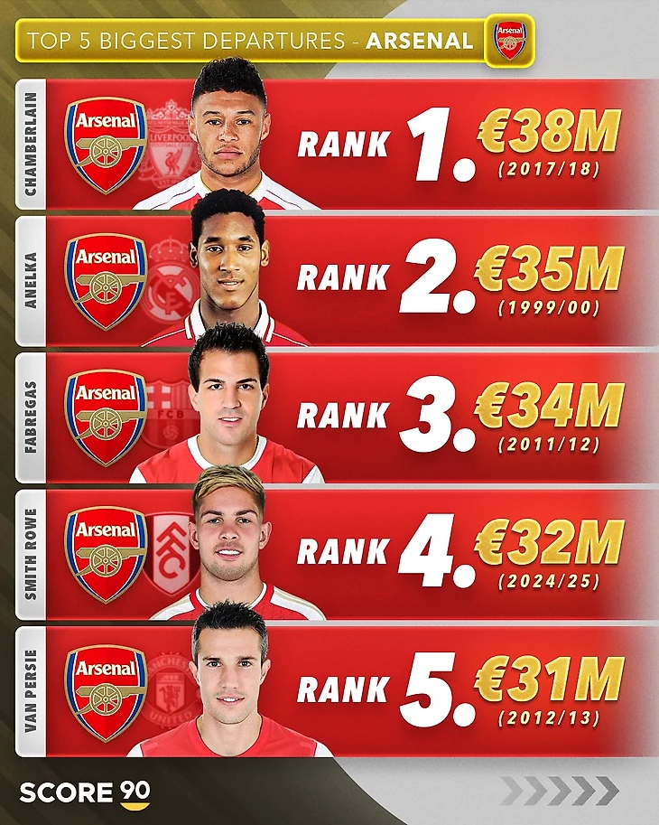 «Канониры» – главные скромники рейтинга. Самой крупной продажей лондонцев остается переход Алекса Окслейд-Чемберлена в «Ливерпуль» за 38 млн евро.