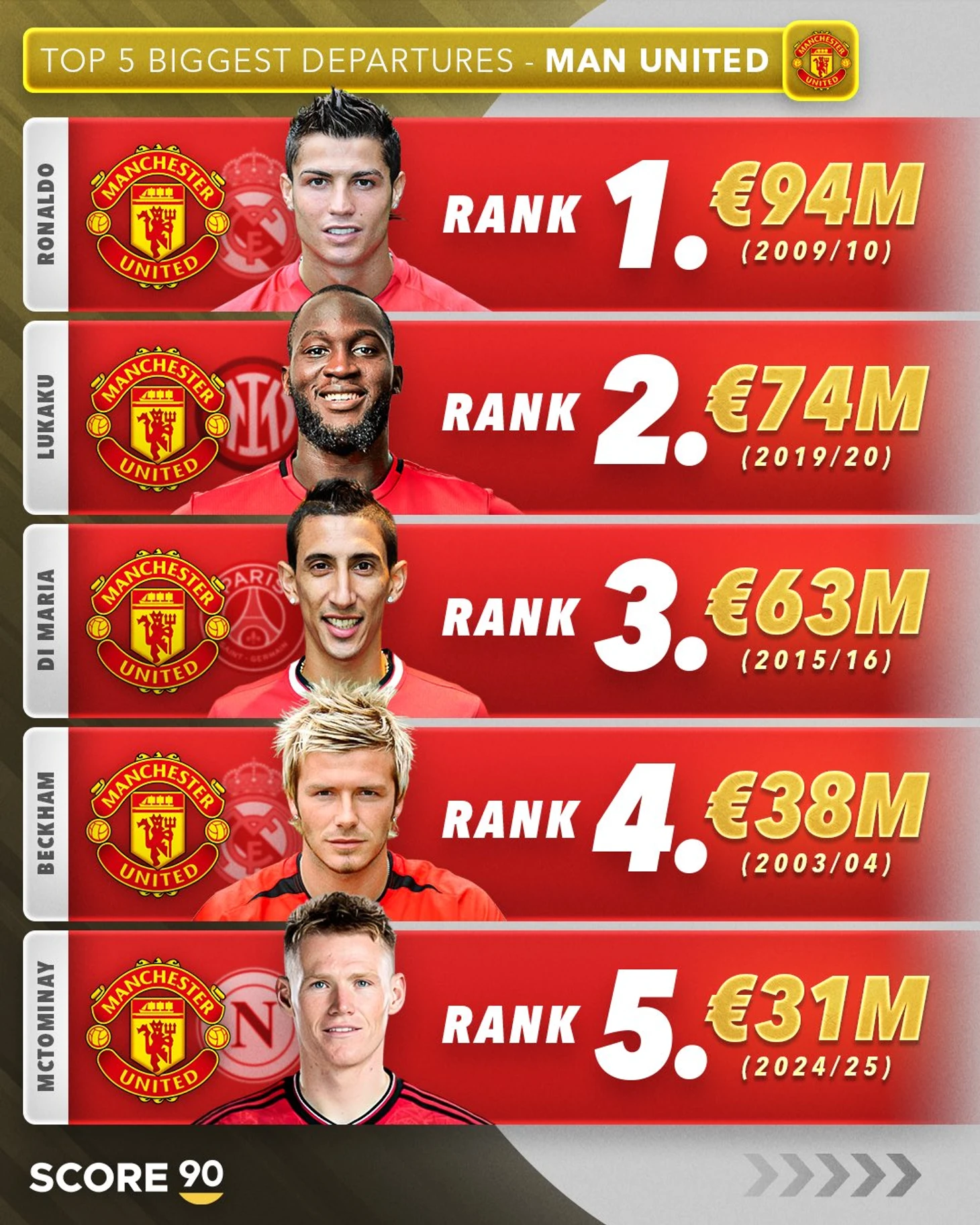 Переход Криштиану Роналду в «Мадрид» за 94 млн евро остается самой крупной продажей манкунианцев. В 2021 году португалец вернулся на «Олд Траффорд», за Криро «красные дьяволы» заплатили «Ювентусу» 15 млн евро.