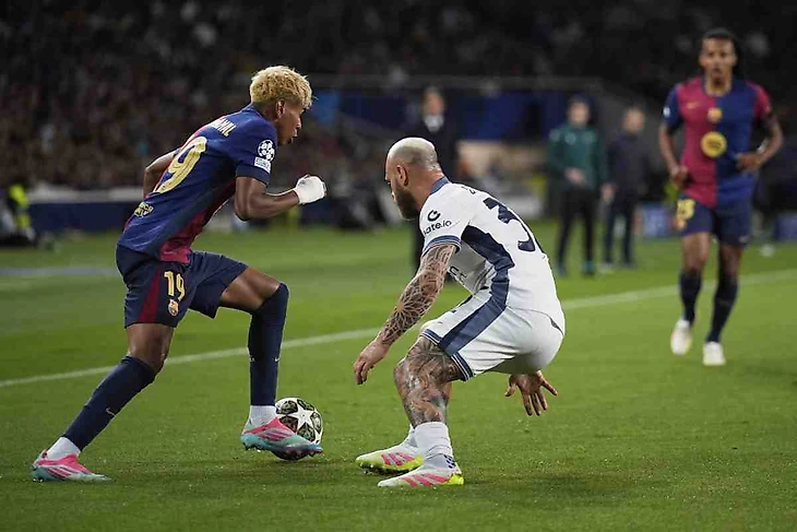 Индзаги пытался сдержать Ямаля с помощью двойной опеки — Мхитарян страховал Димарко, а дополнительную подстраховку обеспечивал Бастони. Подобный метод когда-то применяли против Месси — и, когда игроки «Интера» столкнулись с Ламином на поле, они поняли, почему тренер на тактических разборах уделял этому футболисту столько внимания.
