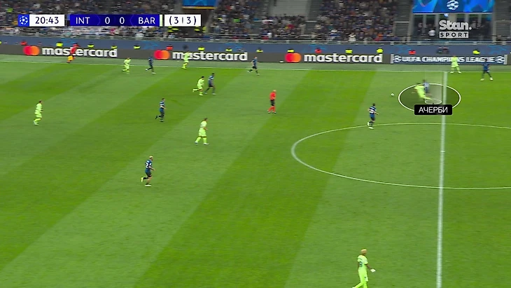 Теперь у «Интера» было максимальное количество игроков под проверку последней линии рывками, но доставка мяча чаще осуществлялась не через комбинации, а просто в один пас: