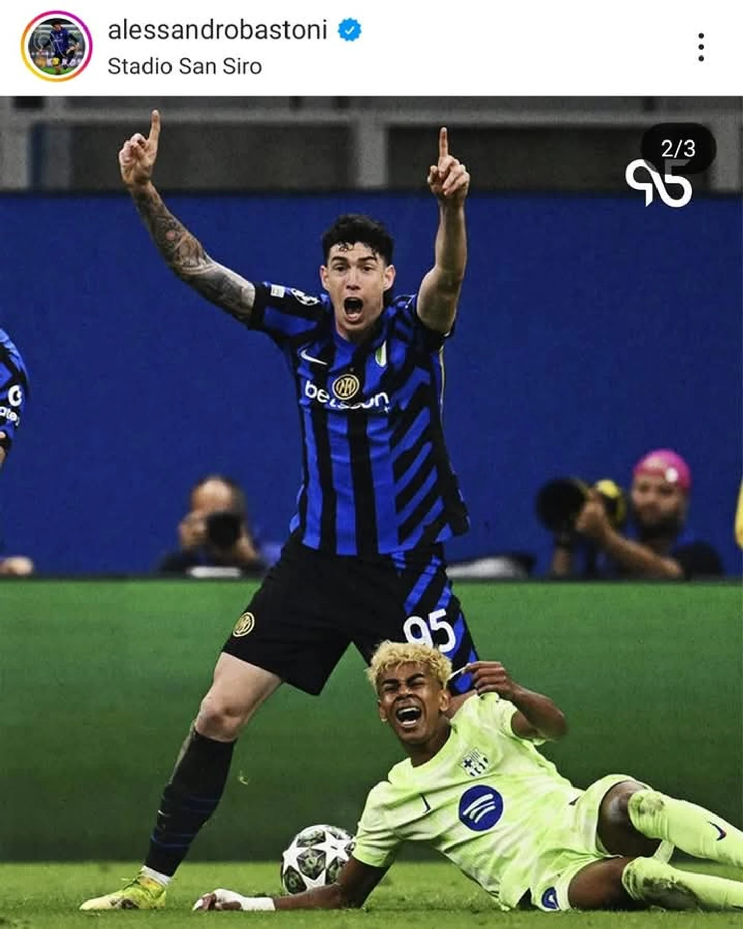 А после победы над «Барсой» в безумном полуфинале текущего розыгрыша турнира защитник «Интера» поделился снимком, на котором возле его ног лежит Ламин Ямаль – на лице юноши гримаса боли.