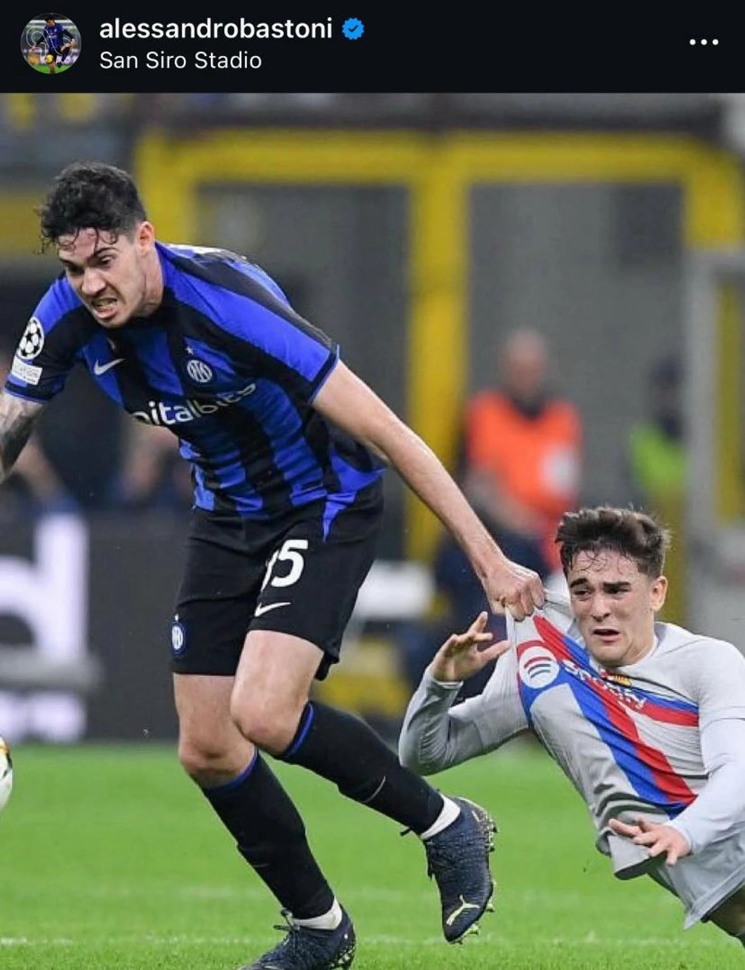После победы «Интера» над каталонцами на групповом этапе ЛЧ в 2022 году, Бастони поделился фотографией, на которой он буквально тащит за собой Гави.