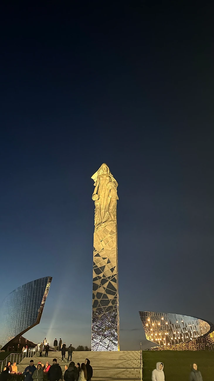 Доминантой мемориала является стела высотой 47 метров. Ее хорошо видно с прилегающих автотрасс. На вершине — скульптурная композиция: мать, обнимающая испуганных детей, а вокруг стелы расположены два пилона, как символическое изображение вихрей войны, которые перемалывают людей. Полторы сотни барельефов людей, за каждым из которых судьбы и истории реальных людей, память о которых сохранилась в рассказах или фотографиях. В скульптурных барельефах предусмотрены небольшие окна, где каждый желающий может зажечь Свечу Памяти.