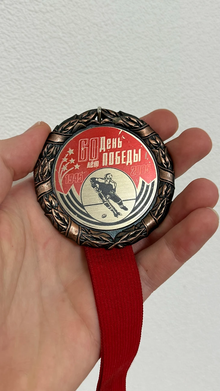 Моя хоккейная медаль. Хранится дома. Награждение было в Доме офицеров в мае 2005 года. Я был ребенком. Данную медаль вручили дополнительно к спортивной: