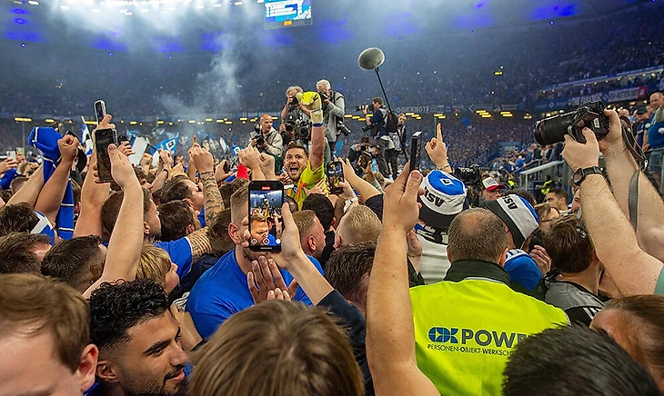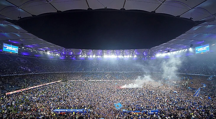 Тогда и случилась та эпичная история: «Гамбург» в последнем туре победил – а болельщики высыпали на поле праздновать выход в Бундеслигу. Так и произошло бы, если бы параллельно «Хайденхайм» не выиграл у «Ян Регенсбурга». Было 1:2 на 90-й, но на 90+3 и 90+9 забили два, вышли в элиту сами и спустил в стыки «Гамбург».