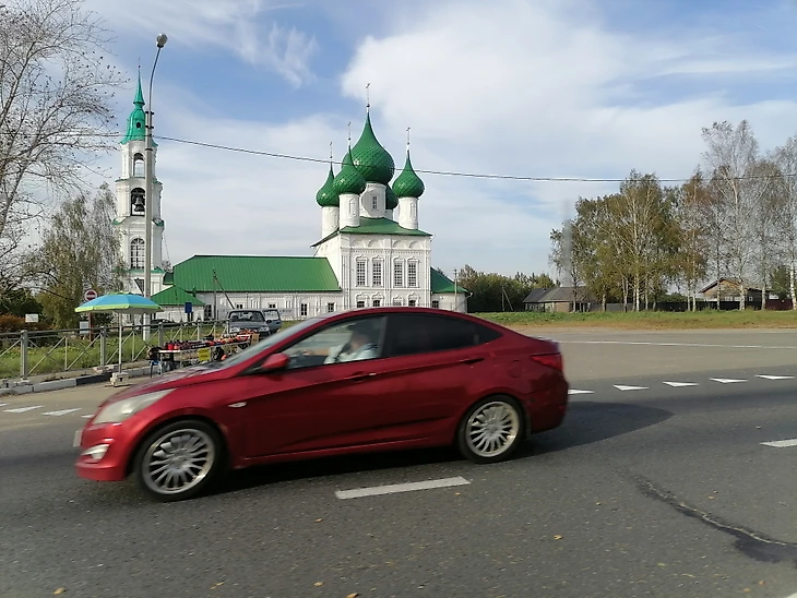 Сегодня сгоняем на адовую движуху в Караваево🔥. Стоим в пробках на выезд из Ярославля, затем мчим по трассе до Костромы 🚗.